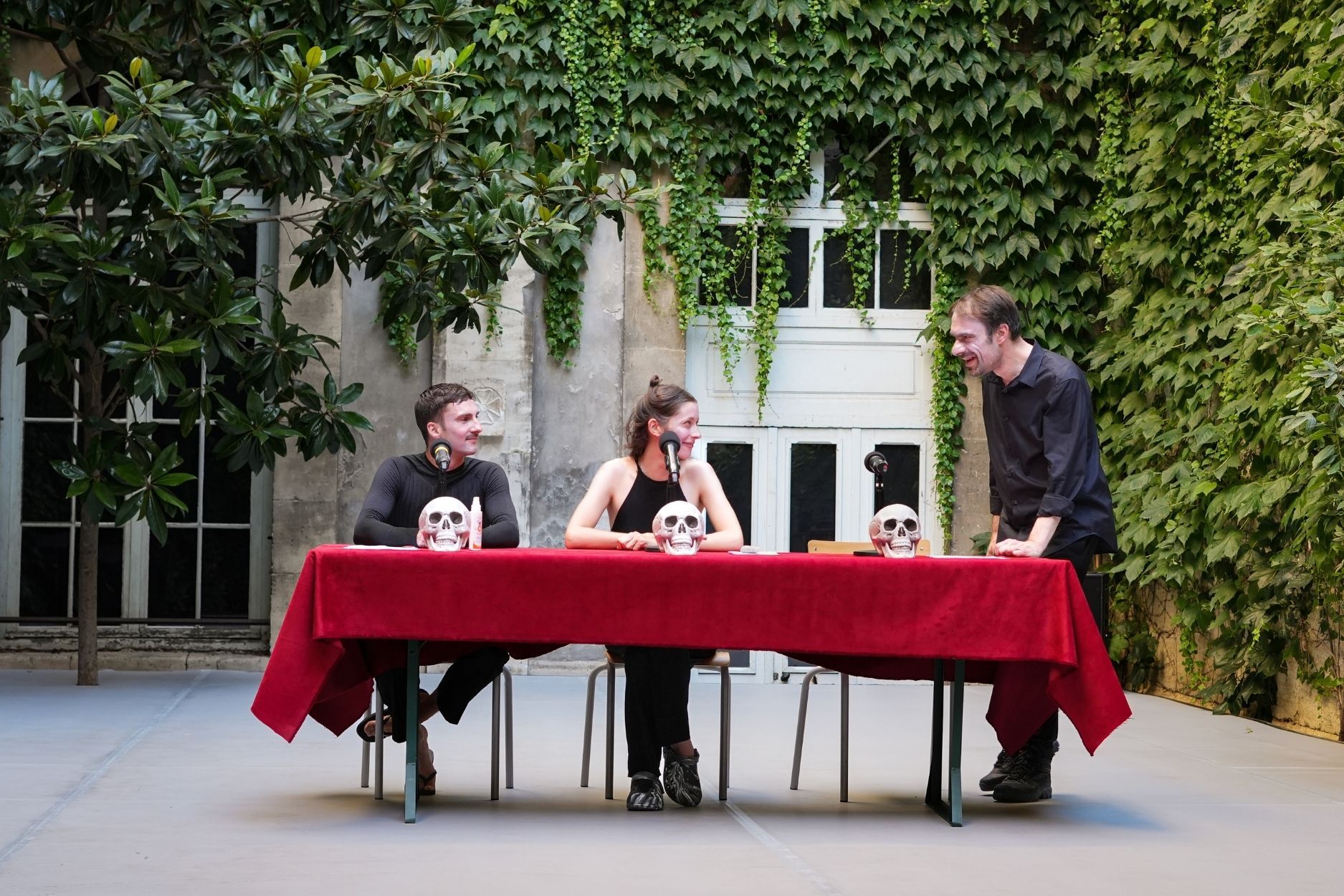 Pour continuer de mêler le théâtre à la philosophie, et se jouer des mots. Écartelés entre leur amour de la bêtise et leur désir de sérieux, Jérôme, Grégoire et Stéphanie s’affrontent à ce qui rend le jeu nécessaire autant que dérisoire : la mort.